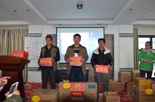 激動(dòng)人心的抽獎(jiǎng)環(huán)節(jié)終于來(lái)到了,獲得抽獎(jiǎng)資格的果農(nóng)朋友紛紛上臺(tái)抽獎(jiǎng),且抽到的獎(jiǎng)項(xiàng)絕無(wú)空獎(jiǎng)。***后一等獎(jiǎng)的大獎(jiǎng)由嶺后的村民抽中,其他村民分別抽中微波爐、電飯鍋、進(jìn)口鋸子、剪子等獎(jiǎng)品。